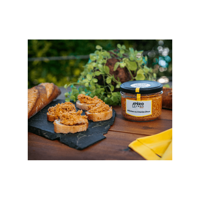 Direction l’Espagne le temps d’un apéro, ces rillettes au goût subtilement relevé sont un parfait mélange entre l’onctuosité des rillettes et la saveur piquante du chorizo. On les déguste « en tapas » sur des toasts grillés, accompagnés de tomates cerises ou de basilic bien frais.