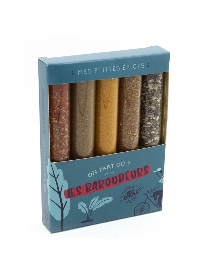 Coffret de 5 mini tubes d'épices et d’herbes accompagnés de conseils d’utilisation