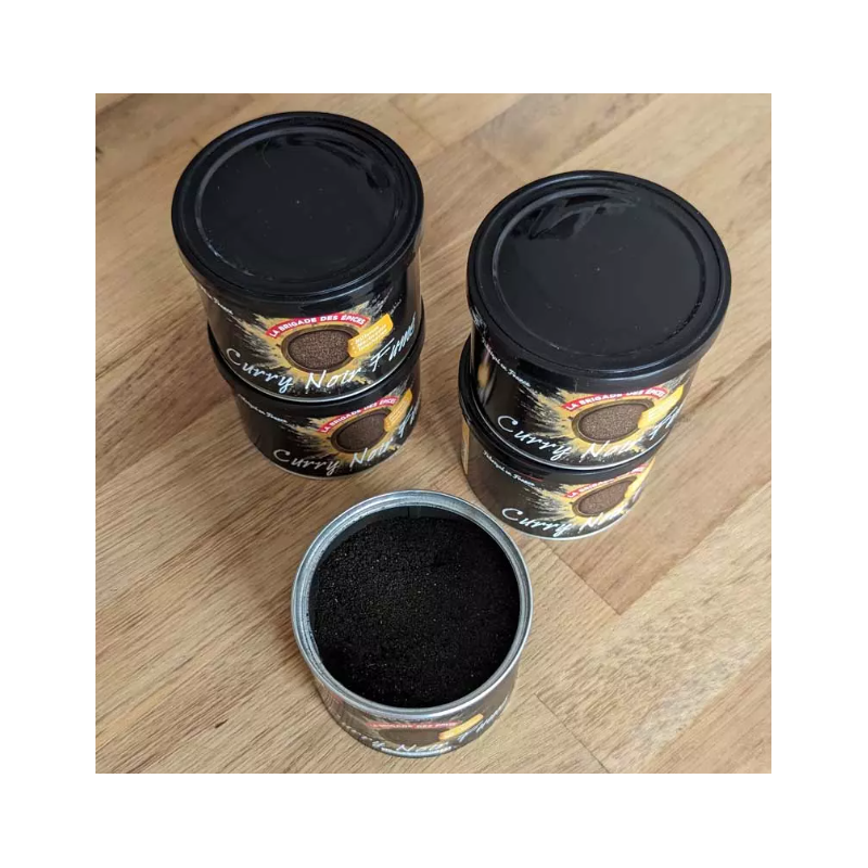 Le curry noir de la Brigade des Epices est un mélange d'épices «maison» composé d'une base de curry madras avec une touche de Charbon végétal pour obtenir cette belle couleur caractéristique et du Paprika fumé qui apportera des notes très intéressante de viande grillée.