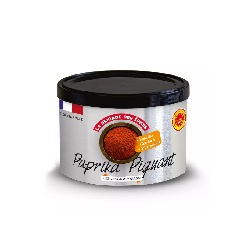 Notre paprika piquant en poudre bénéficie d'une Appellation d'Origine Protégée (AOP) comme seulement trois paprikas dans le monde : les paprikas de Hongrie provenant de la région de Szeged et de Kalocsa et un paprika de Slovaquie.