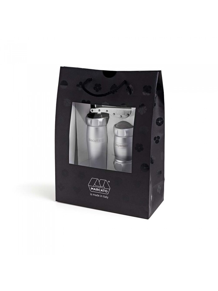 Ce superbe coffret cadeau ne plaira pas qu'aux pâtissiers passionnés. Le coffret contient une presse à gâteaux qui fera apparaître de délicieux biscuits sur votre plaque de cuisson en un rien de temps, ainsi qu'une pratique saupoudreuse à farine et à sucre en argent mat élégant. Un merveilleux cadeau qui est emballé dans un joli sac.