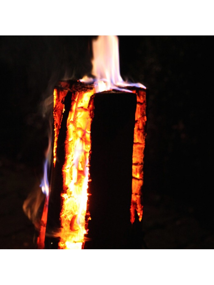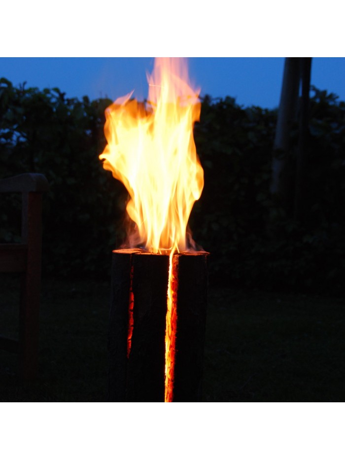 Les bûches incandescentes, qui brûlent lentement, fournissent une chaleur agréable grâce à la technique spéciale de l'apport d'oxygène. Selon le temps et le vent, la torche brûlera plus vite ou plus lentement.