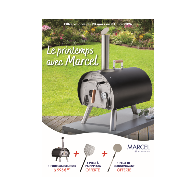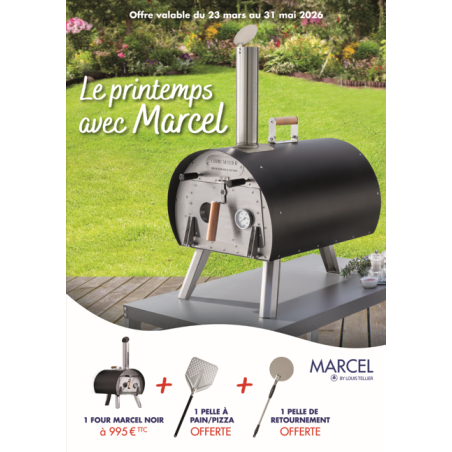 Du 23 mars au 31 mai 2026, le four à pizza Marcel est à 995€ au lieu de 1190€ + la pelle à pizza offerte + la pelle à retournement offerte