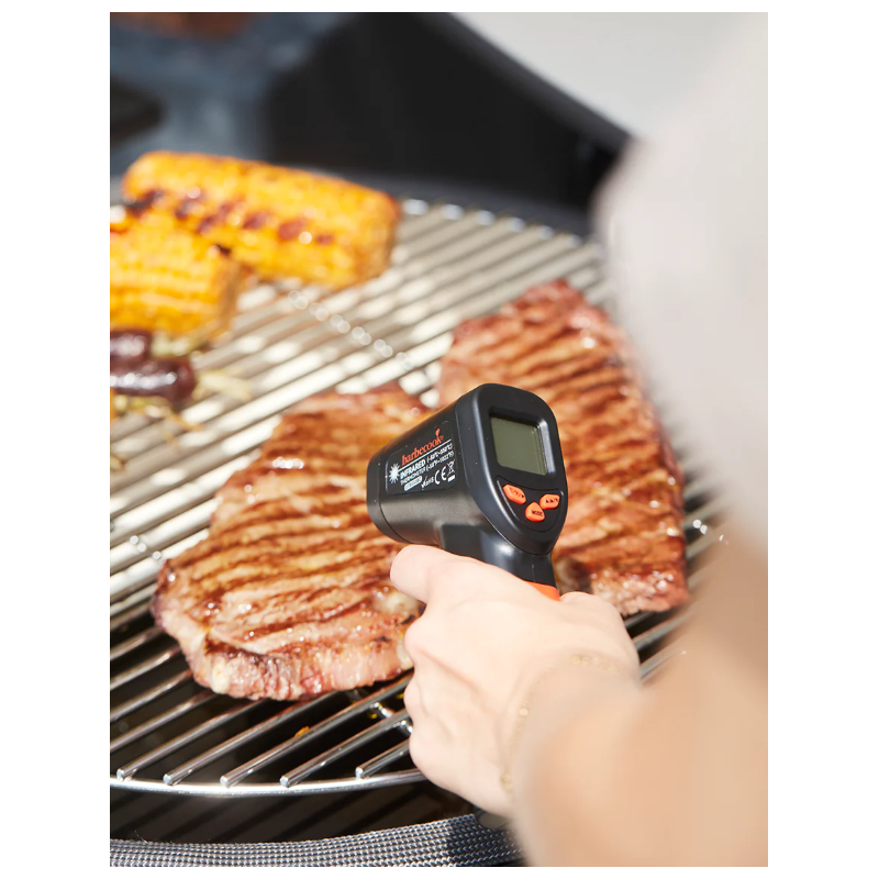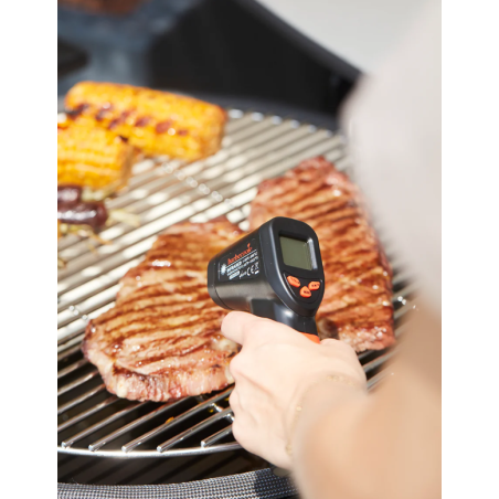 Le thermomètre infrarouge permet des mesures rapides, précises et sans contact de la température du barbecue ou du four à pizza. Grâce à son grand écran facile à lire, il aide à déterminer la température de cuisson idéale pour la viande, le poisson ou la pizza.