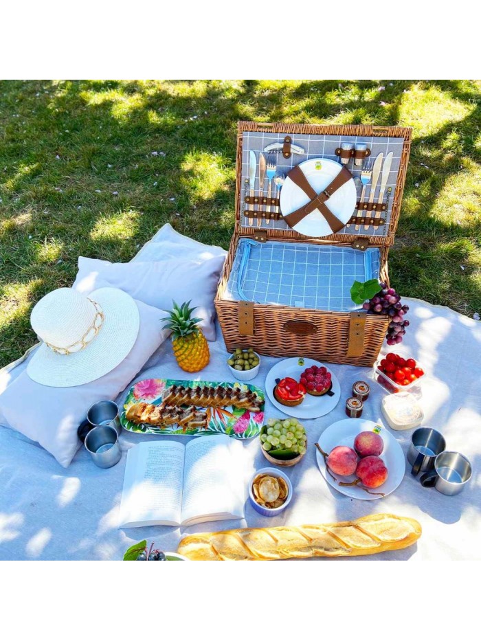 Il possède tout ce dont vous aurez besoin pour un pique-nique en forêt ou au sur la plage : couverts, verres, tasses en aluminium... Pour 4 personnes, ce panier est donc idéal pour les petites familles ou les sorties entre amis.