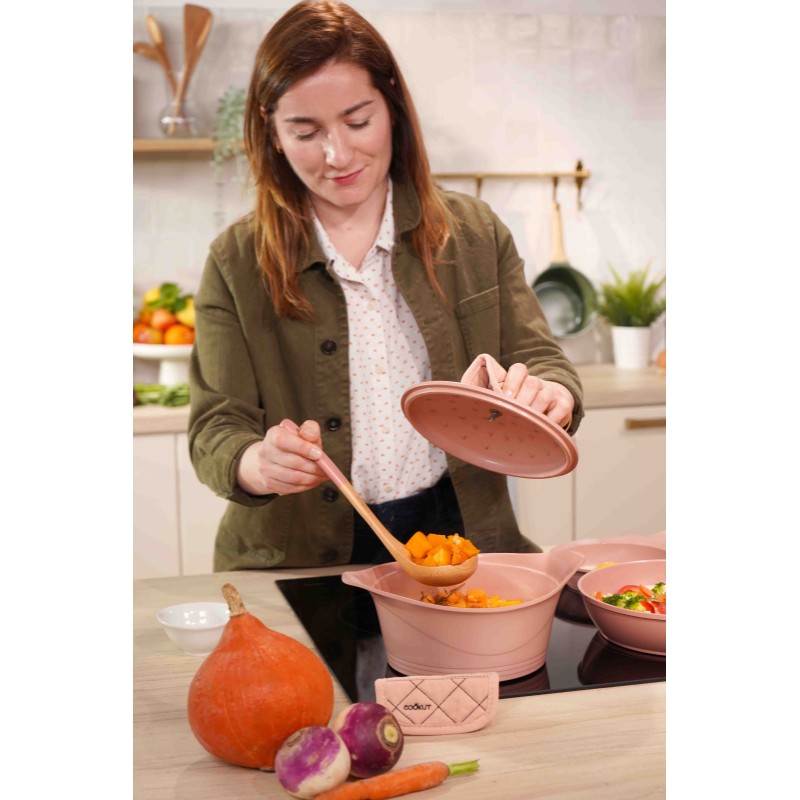 Pourquoi est-elle si incroyable ? 4 fois plus légère qu'une cocotte traditionnelle, cuisinez au quotidien avec l'incroyable Cocotte Cookut 20cm sans vous fatiguer ! Anti-adhérente, préparez des plats sans matières grasses tout en accessoirisant votre cocotte d'un panier vapeur ou d'un couvercle à tajine.