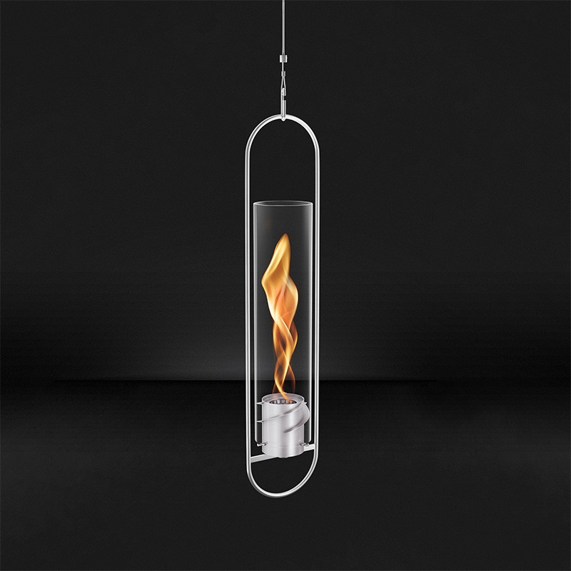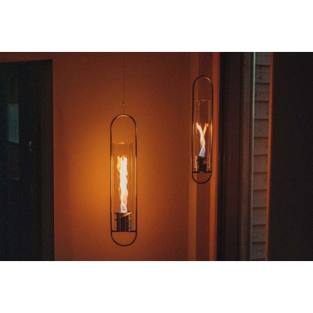SPIN Système de suspension - tel un tour de magie, le tourbillon de flammes semble flotter dans l'espace et devient un accroche-regard impressionnant à l'intérieur comme à l'extérieur. Sans effort ni outil, le corps d'aile est vissé dans le cadre courbé et fixé à un câble en acier inoxydable stable et élégant. Le feu de table s'élève immédiatement et peut être suspendu à une hauteur flexible à l'aide d'un crochet.