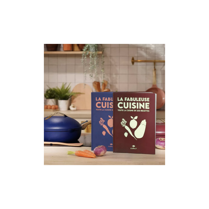 Même si vous pouvez faire toutes les recettes avec vos propres ustensiles, nous avons réalisé les 200 recettes avec « La Fabuleuse », la Poêle 8 en 1 de COOKUT qui permet de mijoter, saisir, frire, bouillir, gratiner, cuire à la vapeur, au four…
