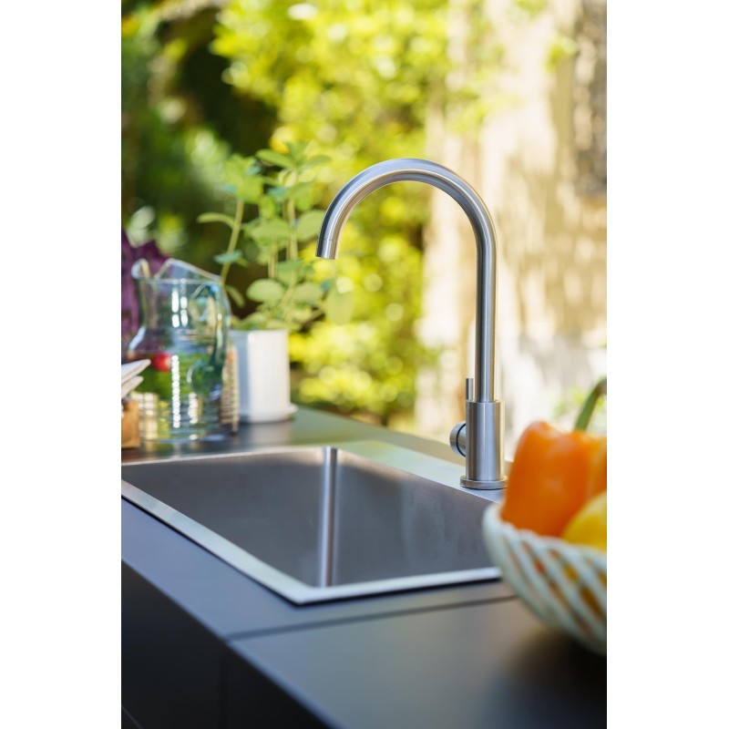 Fabriqué en acier peint époxy noir, ce module équipé d’un évier inox encastré avec mitigeur col de cygne est un atout pratique et esthétique pour les espaces extérieurs. Il est certifié Origine France Garantie, gage de qualité et de traçabilité.