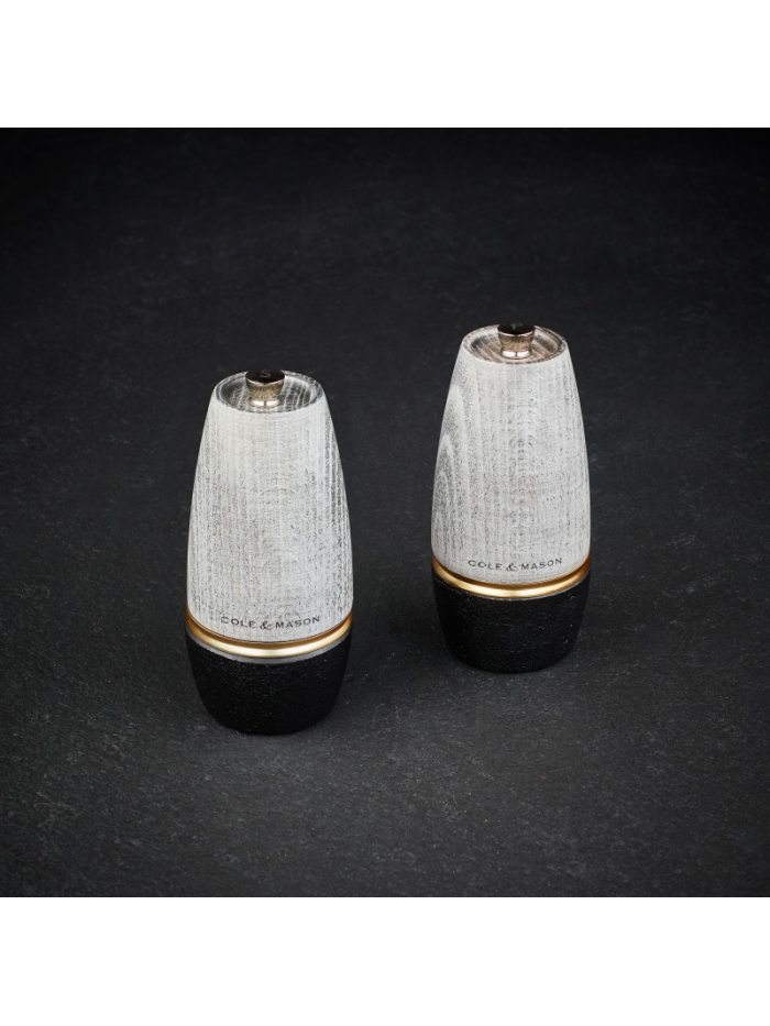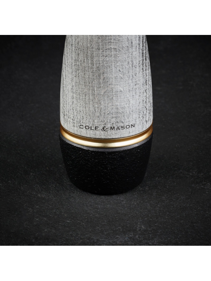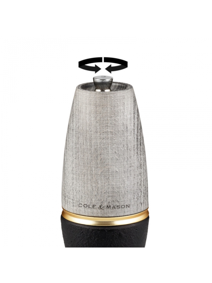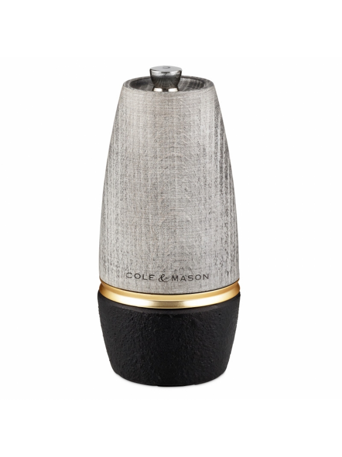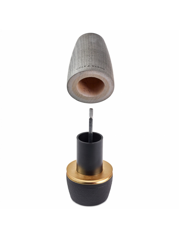 Quand l'esthétisme rencontre la performance… Les moulins Bridgwater ont un look totalement unique, grâce à un mix de matériaux pour le moins surprenant : le bois et la fonte ! Le corps en bois de hêtre leur confère un style noble et authentique, tandis que la base en fonte amène un côté brut et industriel. Le tout est lié par une bague en acier doré, pour une finition tout en délicatesse, qui vient souligner les courbes du moulin. Le mécanisme du moulin à sel est fabriqué en céramique, pour une haute résistance à la corrosion.
