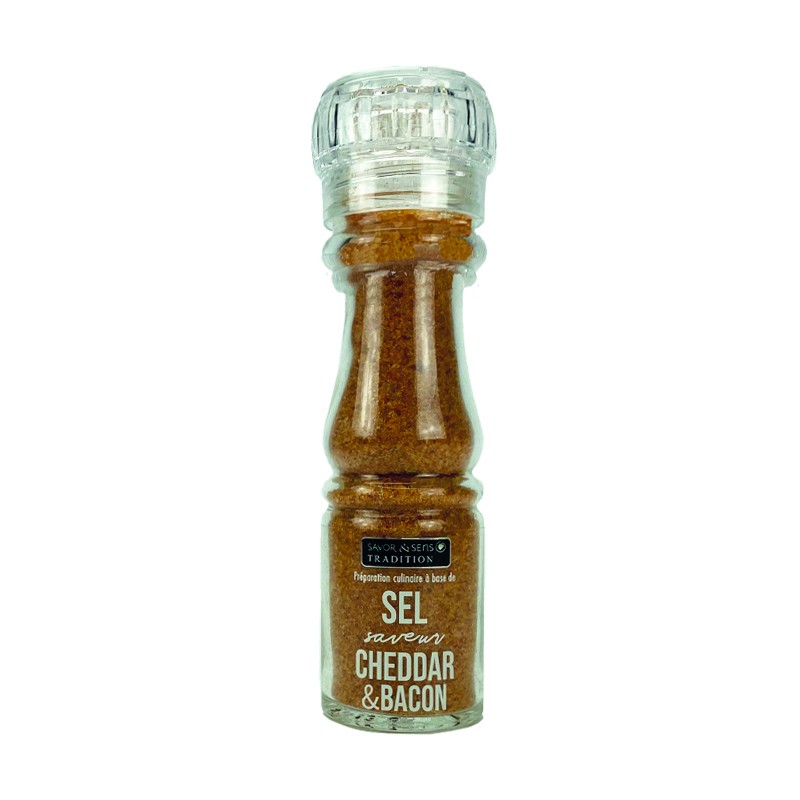 Apportez une touche de gourmandise à vos plats avec notre sel au cheddar saveur bacon. Ce mélange de sel de mer, poudre de cheddar et arôme de bacon offre une explosion de saveurs riches et savoureuses.