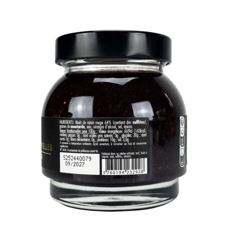 Moût de raisin rouge 64% (contient des sulfites), graines de moutarde, eau, vinaigre d'alcool, sel, épices