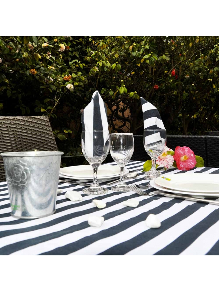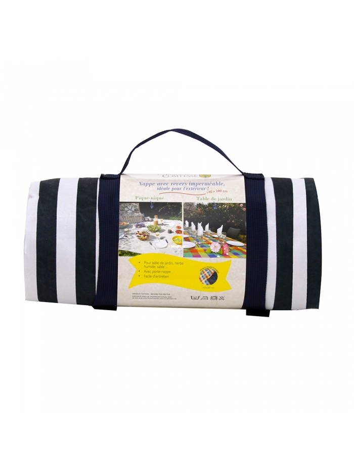 La nappe Marine a une double fonction : elle sera autant parfaite pour les déjeuners sur l’herbe que pour les repas sur les tables en extérieur. Utilisée comme nappe sur table elle apportera une touche de fraîcheur à vos dressages.