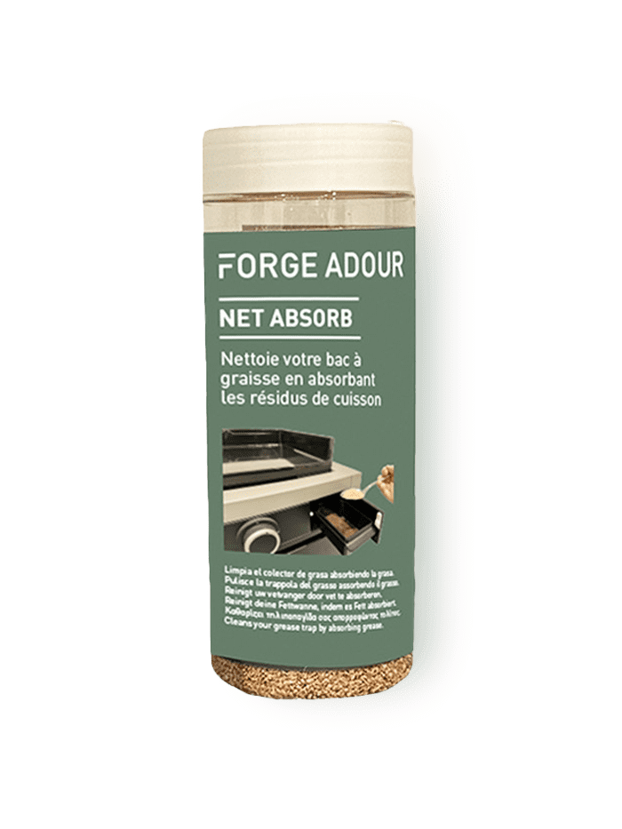 Fini les résidus de graisses qui resalissent votre plancha ! Avec les copeaux Net Absorb de Forge Adour, dégraissez votre bac à graisses de fond en comble. Saupoudrez votre bac de Net Absorb, les copeaux absorbent la graisse et il vous suffit ensuite de vider votre bac à graisses.