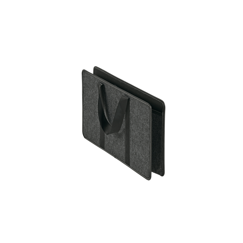 Stylé, pratique et durable, le sac à bûches Fold signé Dixneuf combine une finition en feutrine grise sobre avec des anses satinées noires.