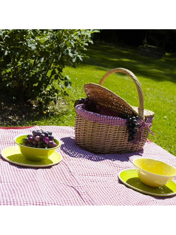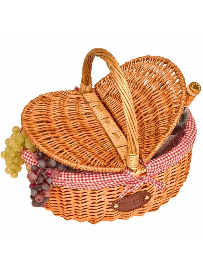 Ce très joli panier « Campagne » est en osier naturel doublé d'un tissu vichy rouge et blanc. Il est muni d’un double couvercle. Ce modèle a été créé en France par Les Jardins de la Comtesse, il a été tressé à la main avec des brins d’osier de la meilleure qualité ce qui fait du panier « Campagne » un panier unique pour un pique-nique chic. Le tissu est attaché avec un nœud. Il peut donc être défait et être lavé. Sa anse le rend très facile à transporter.
