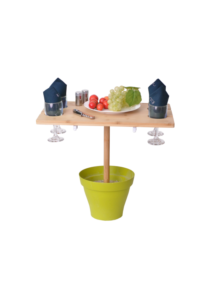 Le panier pique-nique SAINT HONORÉ est un de nos paniers les plus innovants fabriqués par Les Jardins de la Comtesse. Une fois le panier pique-nique ouvert, il suffit de visser le pied pour que son couvercle se transforme en une petite table stable. Il vous suffit de glisser votre verre dans les encoches prévues à cet effet pour ne pas renverser les verres.