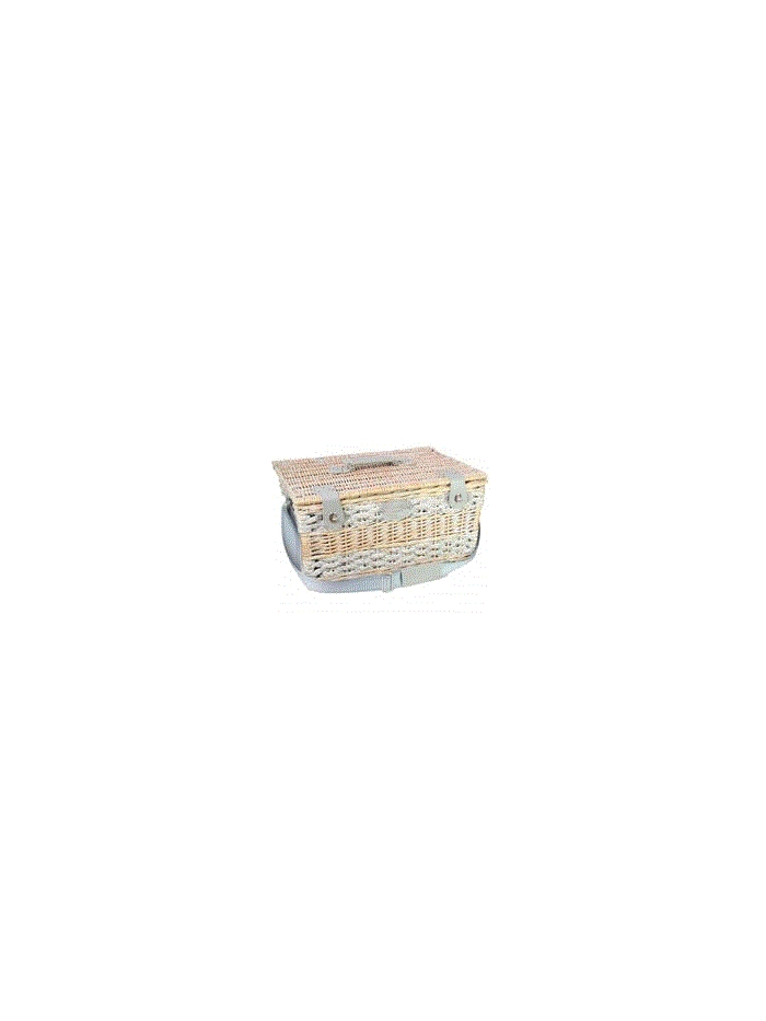 Un panier pique-nique complet et élégant avec son intérieur gris à fines rayures blanches, et ses sangles de couleur grise.