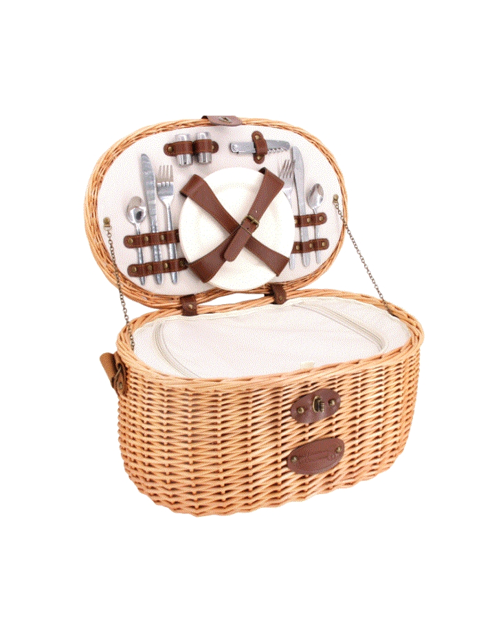 En famille ou avec des amis, partez en escapade gourmande avec ce panier pique-nique de couleur miel doré.