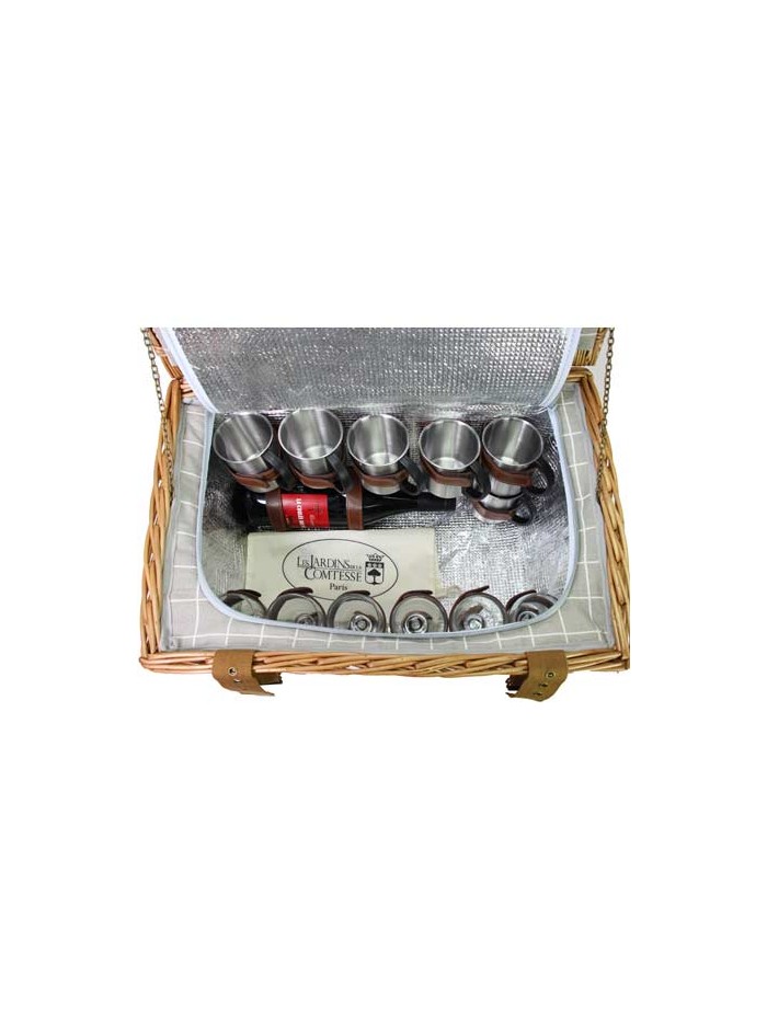 Disposant du nécessaire de pique-nique pour 6 personnes, il permet d’éviter les mauvaises surprises. En complément des accessoires habituels, ce modèle dispose de 6 timbales en aluminium pour prolonger le pique-nique jusqu'au tea-time !