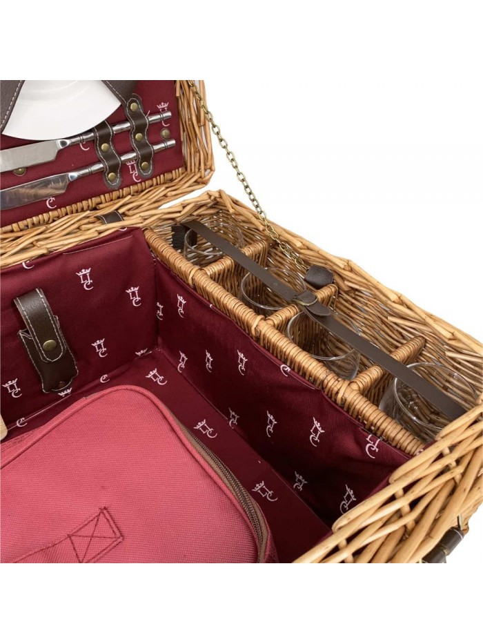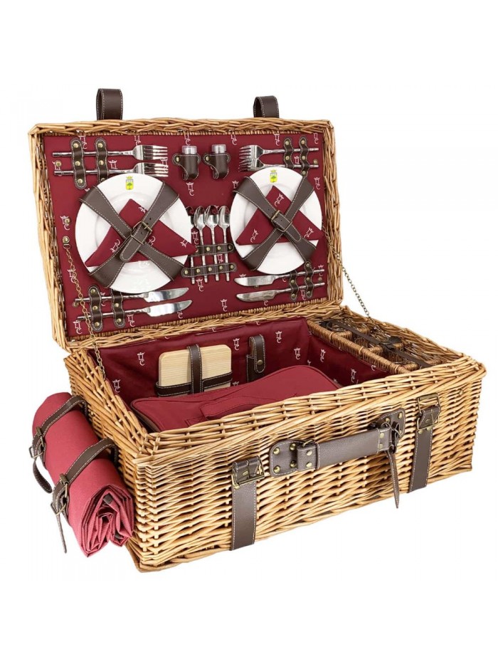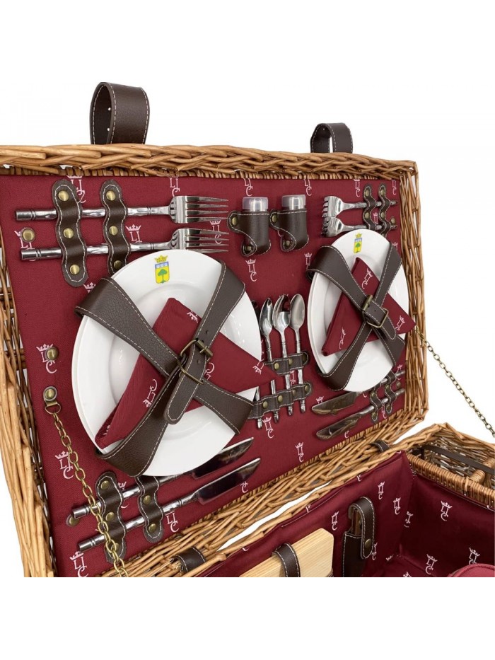 Le panier pique-nique 4 personnes Champs-Elysées est un panier ultra chic. Ses sangles en cuir font de lui notre panier le plus luxueux. Fait à la main, ce panier a été fabriqué en apportant un grand soin aux moindres détails. Un mélange de luxe et de tradition.