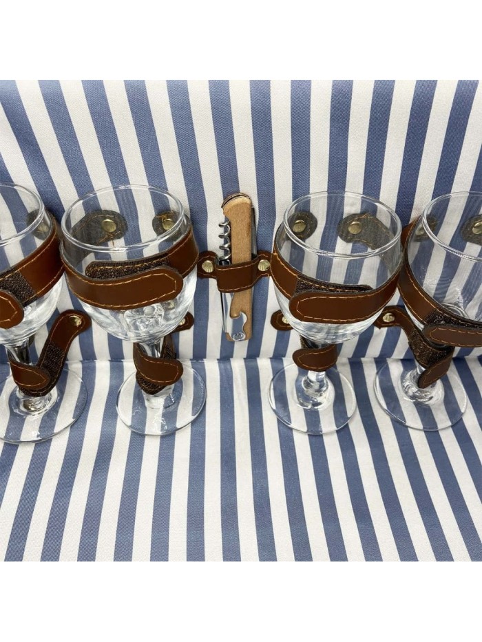 - 4 verres à pied en verre (14 cl) maintenus par des lanières.