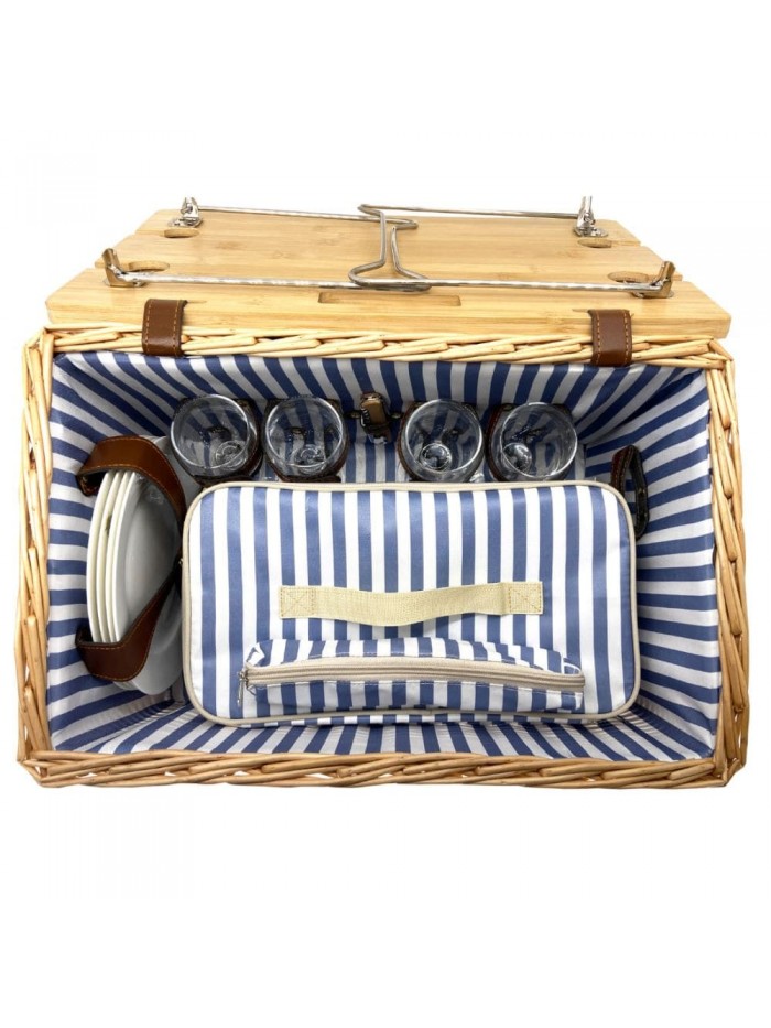 Le panier pique-nique est vendu avec toute la vaisselle et les accessoires nécessaires pour que votre pique-nique se déroule à merveille. Vous y trouverez des assiettes en céramique, des couverts, des verres, un ouvre-bouteille et une poche isotherme amovible pour conserver vos aliments au frais.