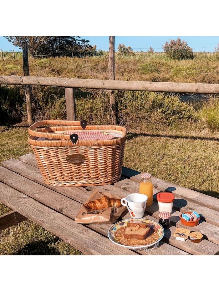 Pour son tissu, c'est le coton qui a été sélectionné. En effet, le coton est une fibre végétale très isolante, idéale pour en faire un panier isotherme. Le tissu en coton vichy rouge est facilement lavable.