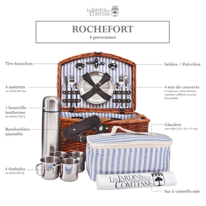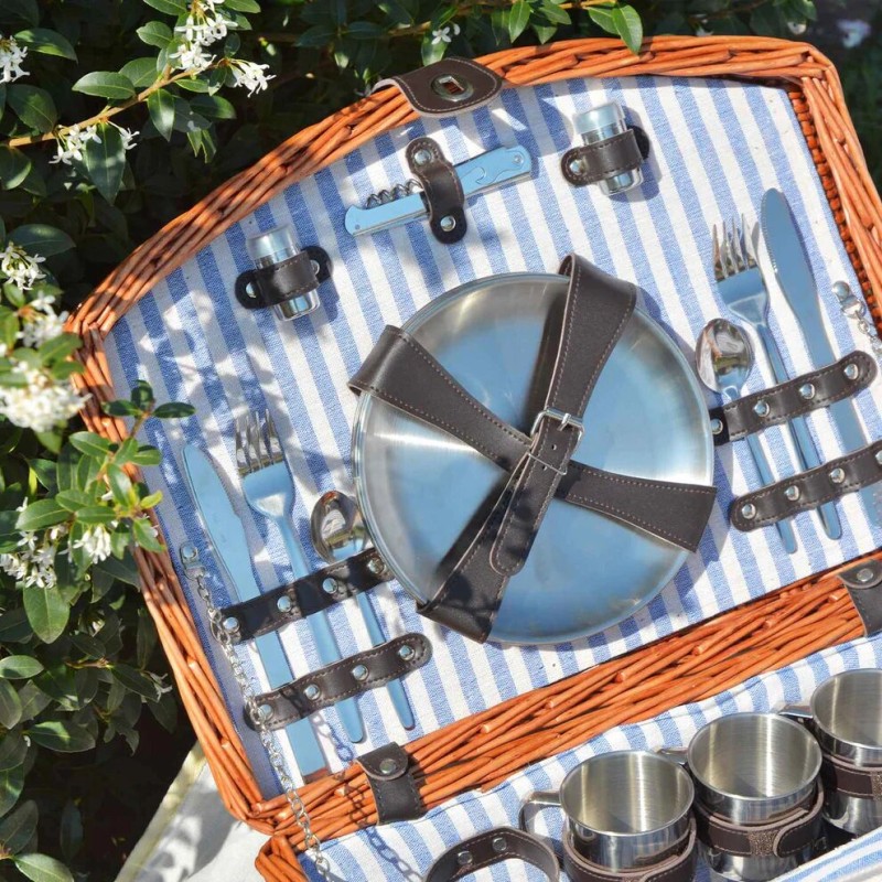 Il est livré complet avec vaisselle et accessoires inox incassables, soigneusement rangés dans des compartiments bien pensés.