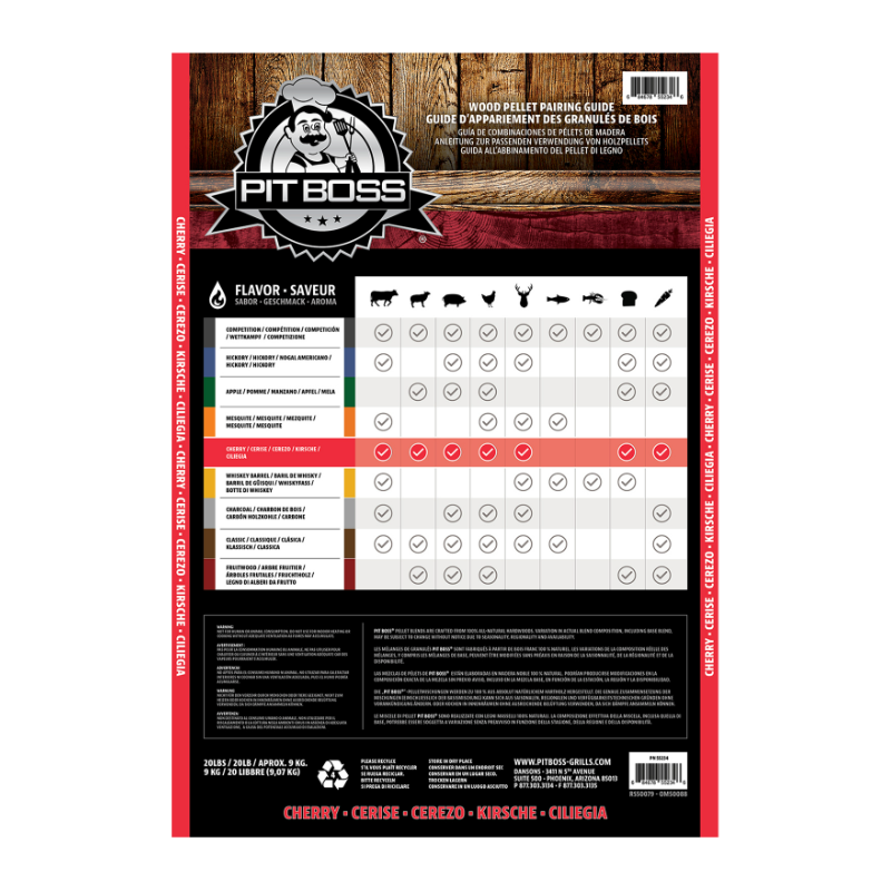 Les granulés de bois dur Pit Boss Cerise sont le mélange idéal pour tous vos besoins de fumage.