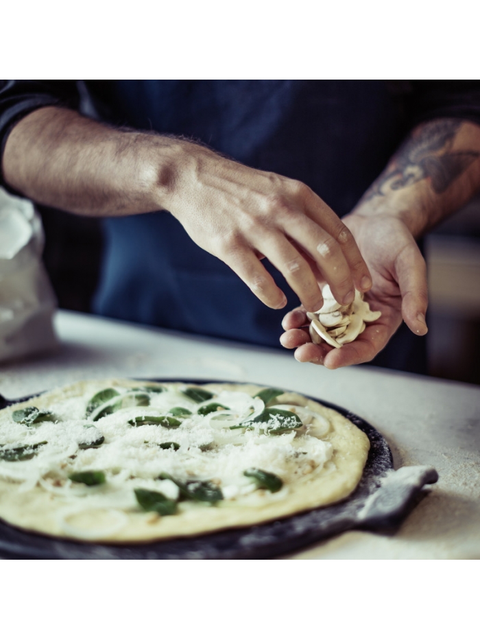Sa surface lisse permet de travailler la pâte et bâtir la pizza directement dessus. Il ne reste plus qu'à enfourner le tout ! Et le résultat à la sortie du four est une belle pizza à la pâte croustillante.