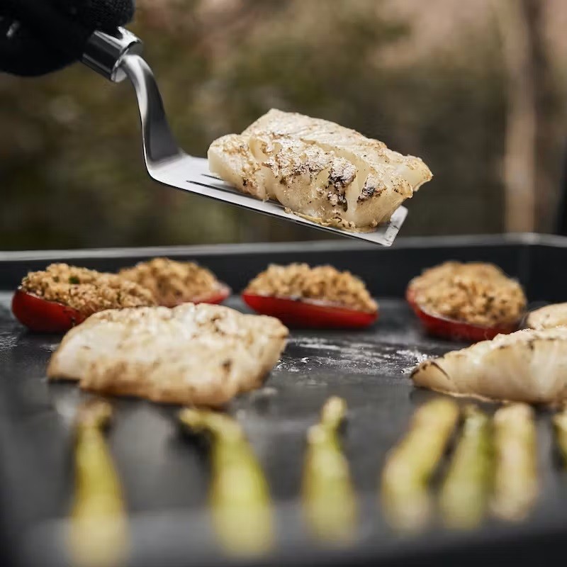 La plaque de cuisson atteint plus de 260 °C et diffuse uniformément la chaleur d'un bord à l'autre pour permettre une cuisson homogène de vos aliments, quel que soit l'endroit où vous les posez sur la plancha.