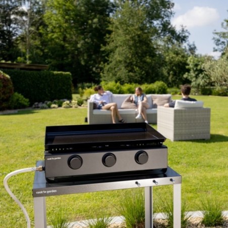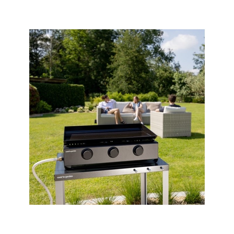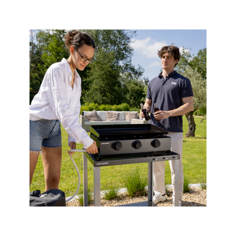 Avec ses 3 brûleurs en acier inoxydable, d’une puissance totale de 6 kW, et son bac récupérateur de graisse amovible, elle offre une montée en température rapide et un entretien simplifié. Parfaite pour vos repas en extérieur, en famille ou entre amis.