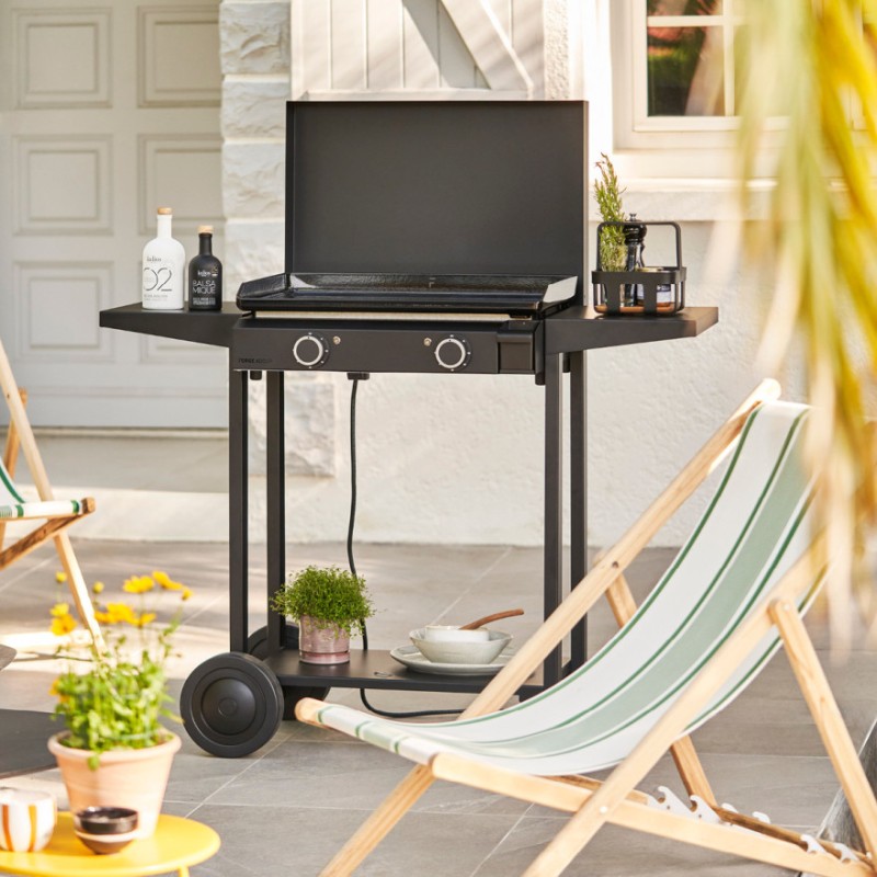 La plancha Base électrique, c'est l'incontournable pour la convivialité. Elle concentre les essentiels d'une plancha : une plaque de cuisson fonte émaillée offrant une répartition de la chaleur optimale et une montée en température rapide, un châssis en acier noir résistant aux chocs, aux UV et à la corrosion, un bac à graisses intégré permettant de récupérer les résidus de cuisson (350 ml). En taille 60, la plancha Base électrique est équipée de deux zones de cuisson permettant de cuisiner pour 8 à 10 convives.