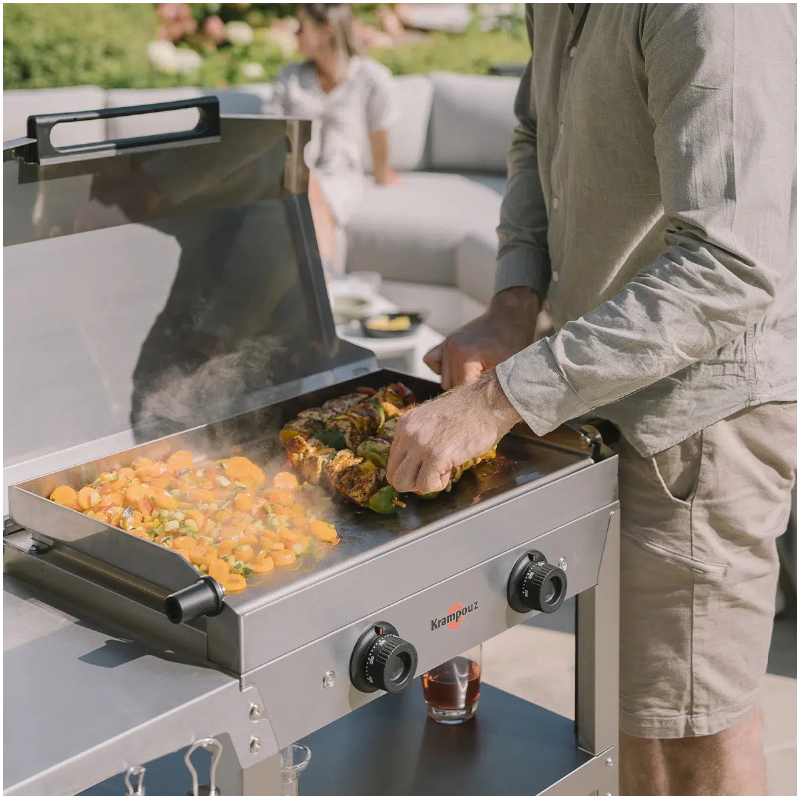 Facile et rapide, le nettoyage de la plaque du Kombi s’effectue à l’eau après utilisation ou entre deux préparations. L’inox est très facile à nettoyer lorsqu’il est encore chaud, l’entretien de la plaque n’en sera que plus rapide s’il est réalisé directement après utilisation de la plancha.