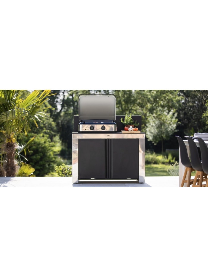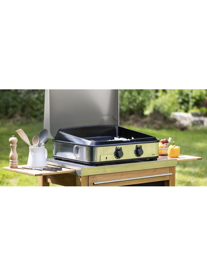 Plancha 2 feux gaz - Châssis inox - Capot de protection inox inclus