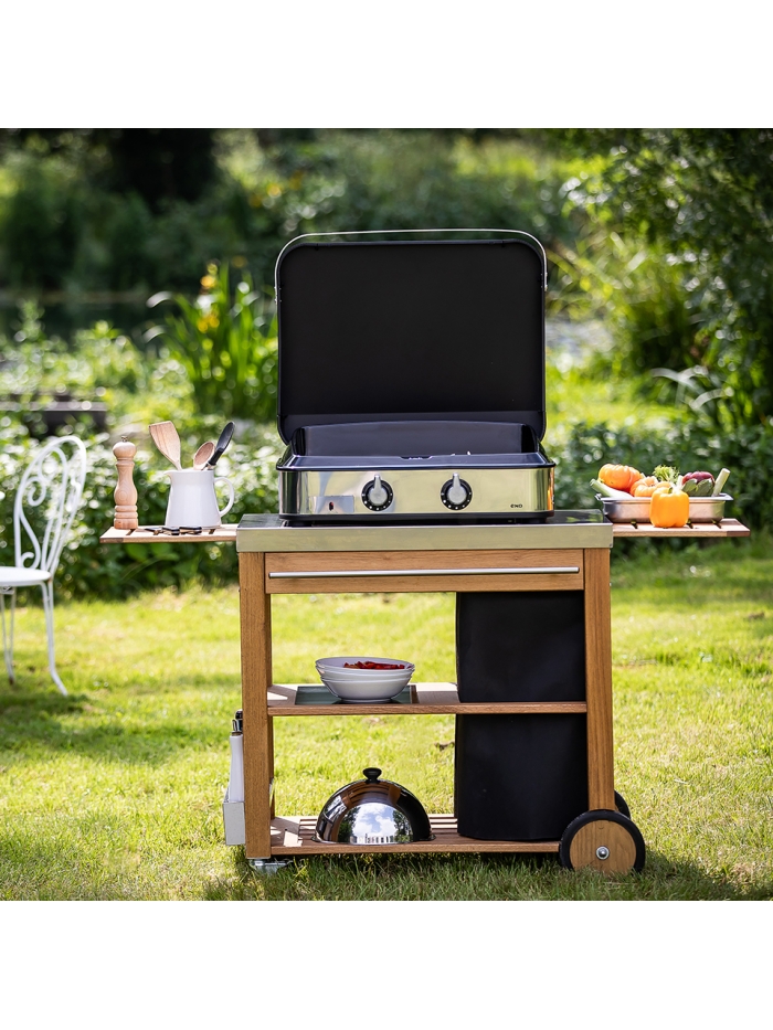 Plancha 2 feux gaz - Châssis en inox qualité marine - Capot de protection inclus