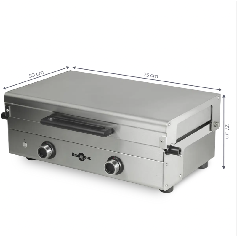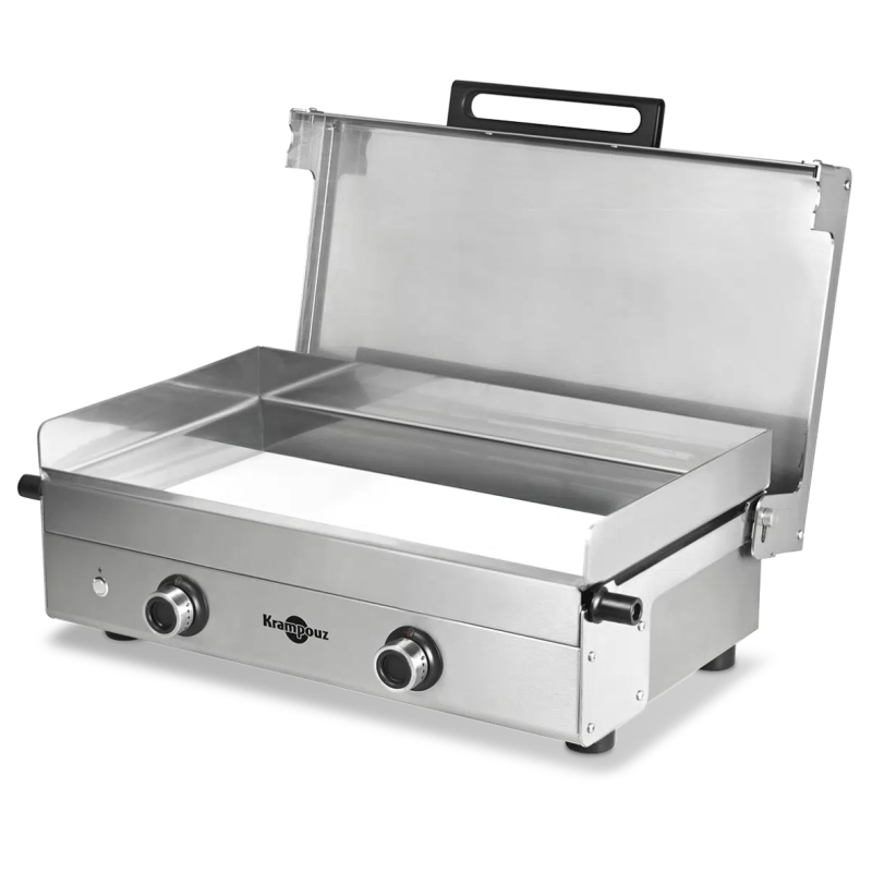 La première plancha gaz Krampouz avec capot de protection en inox intégré, monté sur charnières.