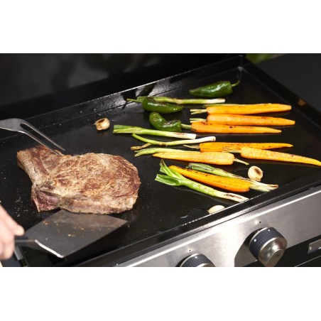 Grâce à ses deux zones de chauffe indépendantes, cette plancha permet de cuire différents aliments à des températures variées en simultané. Sa puissance assure une saisie rapide des viandes tout en conservant le moelleux, tandis que la plaque en fonte émaillée garantit une diffusion uniforme de la chaleur.