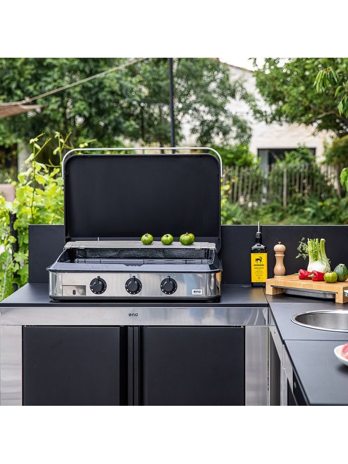 MADE IN FRANCE : Eno propose un appareil qui mélange design, praticité et innovation ! La plancha gaz ENO Enosign 80 est dotée d'une plaque de cuisson en fonte émaillée, d'un capot de protection en inox marin anti-UV / anti rayures. L'ergonomie au bout de vos doigts avec un allumeur intégré aux manettes. Ce modèle offre une garantie à vie sur la plaque de cuisson.