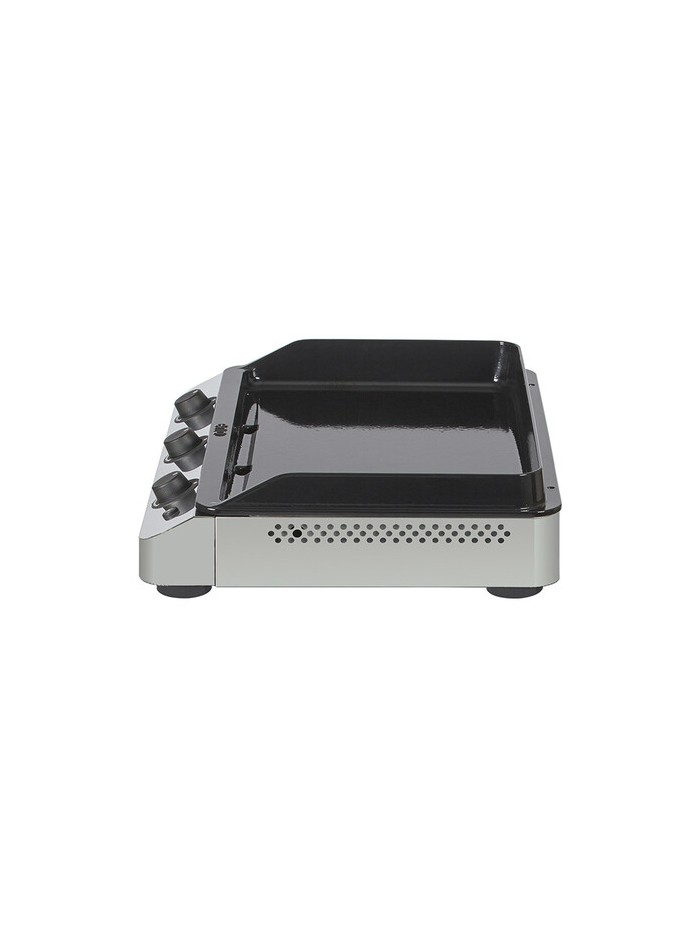 Nouvelle plancha gaz ENO, la Fusion 75 a 3 brûleurs entourés d’un châssis en inox marin parfait pour le bord de mer. Sa plaque en fonte émaillée de 7 mm est parfaite pour cuisiner des plats savoureux pour environ 12 personnes !