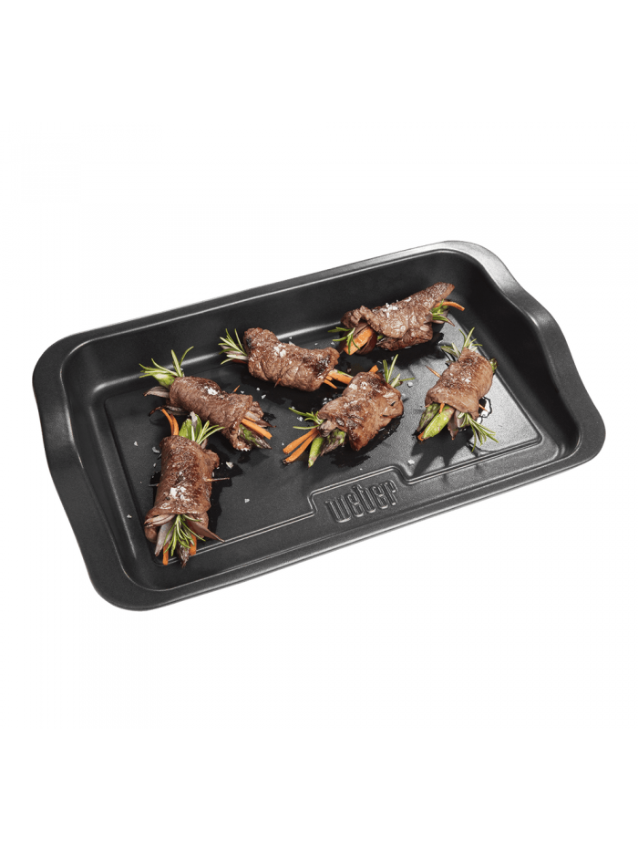 Les hauts rebords maintiennent les jus dans l'ustensile et permettent de retourner facilement vos préparations