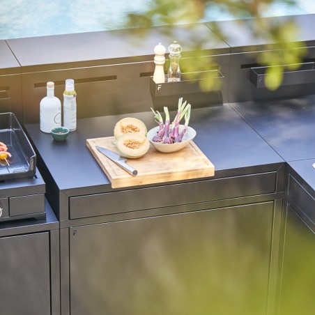 La planche à découper est un incontournable en cuisine. Avec arrêt, cette plancha à découper en chêne se pose sur votre cuisine extérieure ou votre support pour vous offrir un large espace de préparation et de découpe. Elle à également une rainure de 4mm pour les jus lorsque vous déoupez des morceaux de viande afin de garder votre plan de travail propre!