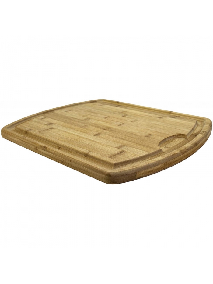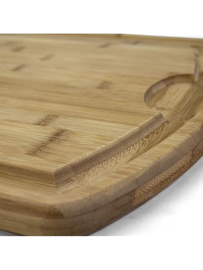 Ce billot de boucher de Totally Bamboo est idéal pour la découpe de tous types de viandes, que ce soit pour la viande saignante avec sa rigole profonde ou pour de la viande blanche.