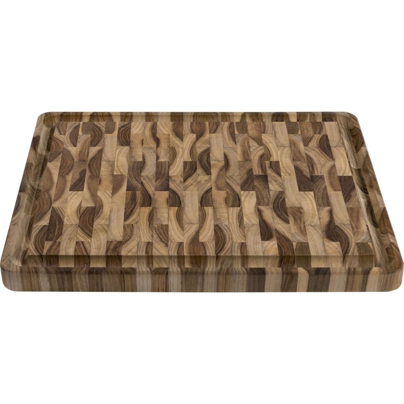 Une véritable pièce maîtresse dans la cuisine! Sublimez chaque découpe et chaque présentation grâce à une planche pensée pour les chefs comme pour les passionnés. Fabriquée en bois de bout de Teck, elle résistera à toute épreuve et vous suivra dans vos préparations pendant longtemps!