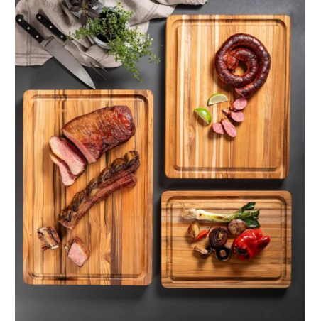 Dotée d'une profonde rigole à jus, ces planches seront parfait pour servir de belles pièces de viandes en hiver comme en été autour du barbecue!