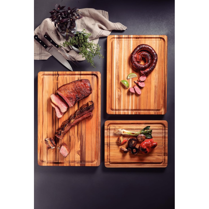 Dotée d'une profonde rigole à jus, ces planches seront parfait pour servir de belles pièces de viandes en hiver comme en été autour du barbecue!