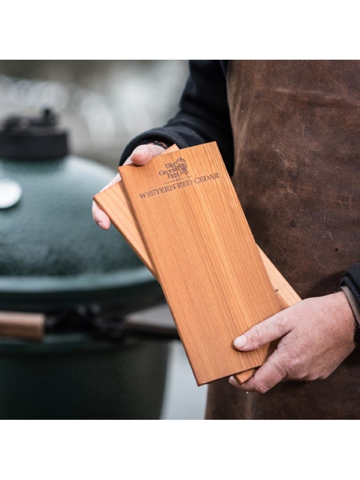 Disposez vos ingrédients sur la planchette (préalablement trempée dans l’eau) puis posez cette dernière sur la grille de cuisson de votre Big Green Egg. L’humidité absorbée par le bois se transforme alors en une délicate fumée aromatique.