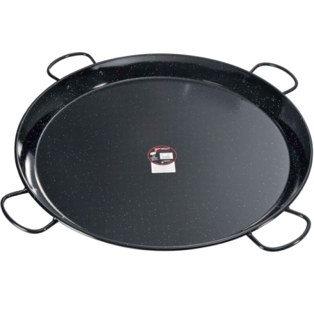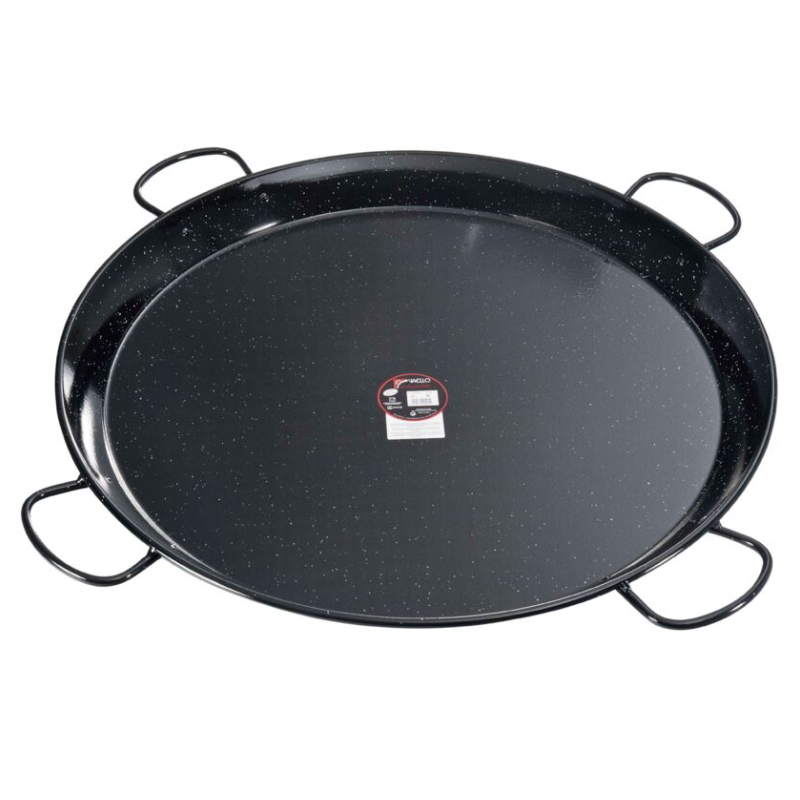 Préparez la paëlla parfaite avec le Plat à Paëlla Acier Émaillé 100 cm de chez Vaello Campos: un ustensile de qualité professionnelle pour des saveurs authentiques et une cuisson uniforme à chaque fois - idéal pour environ 85 personnes.