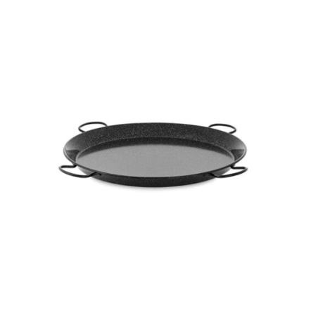 Produit fabriqué en acier laminé à froid revêtu d'une couche d'émail anti-acide. Le plat à paëlla en acier émaillé offre les mêmes prestations que le plat en acier poli, mais avec un nettoyage et un entretien plus simple.
